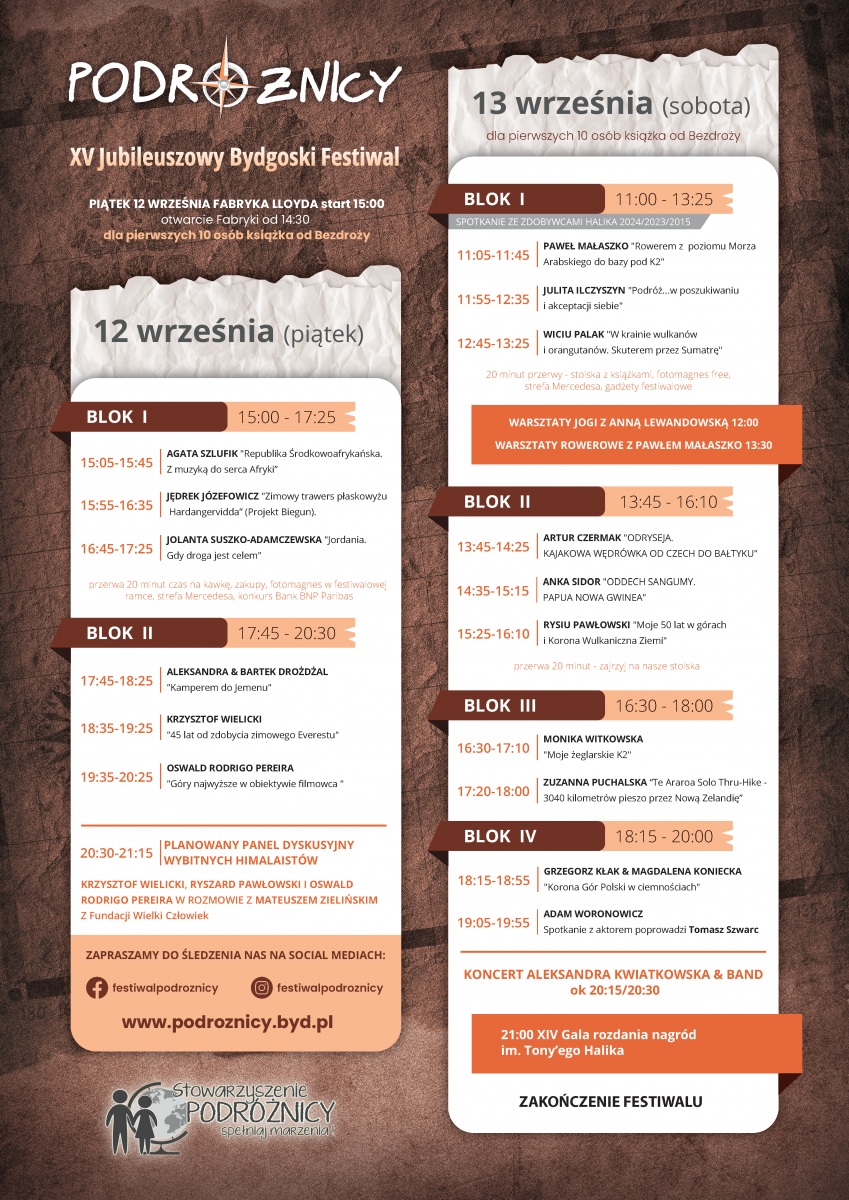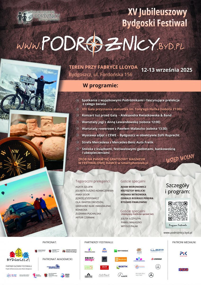 FESTIWAL PODRÓZNICY W BYDGOSZCZY MA ZASZCZYT OZNAJMIĆ, IŻ HONOROWY PATRONAT NAD WYDARZENIEM OBJĘLI
